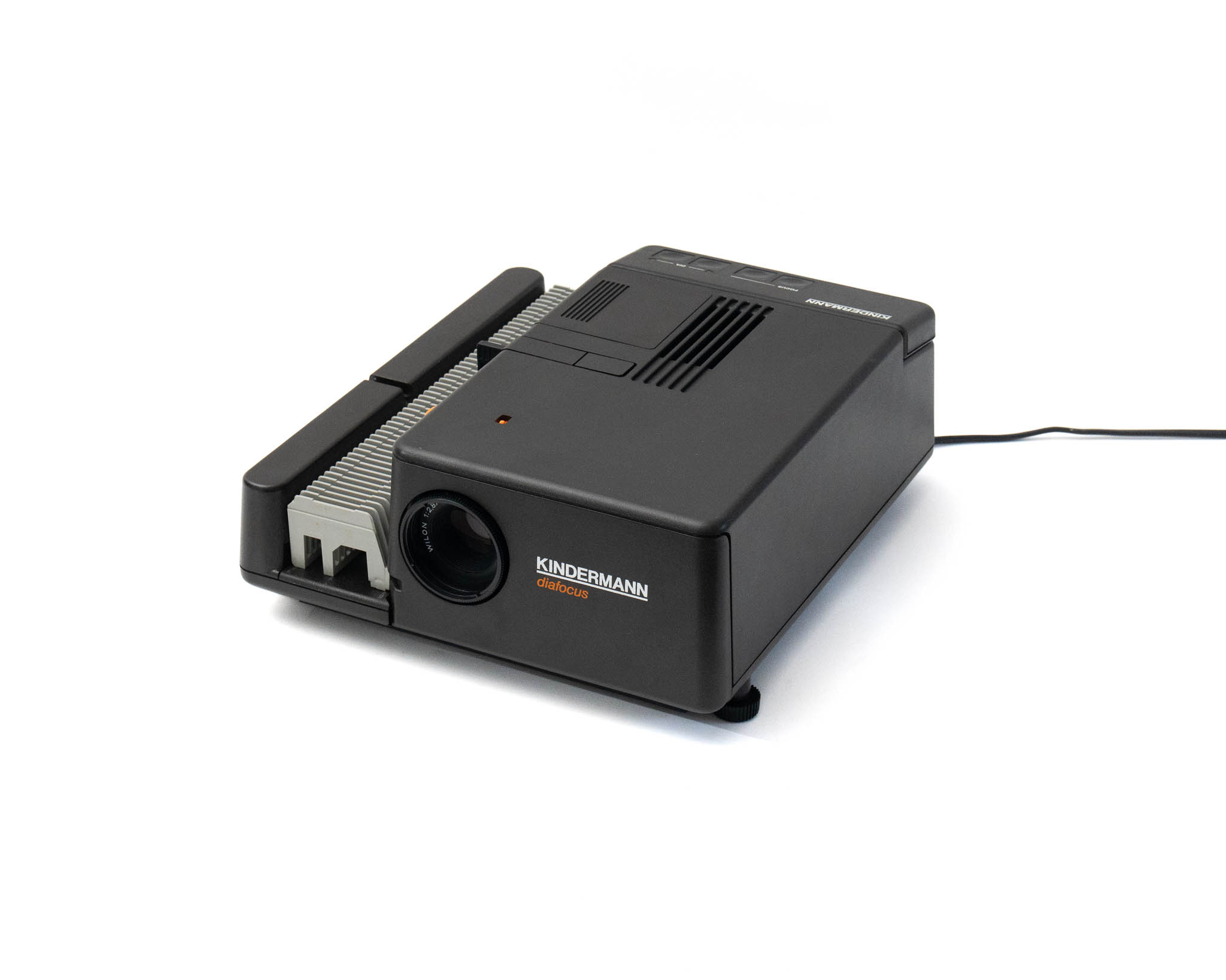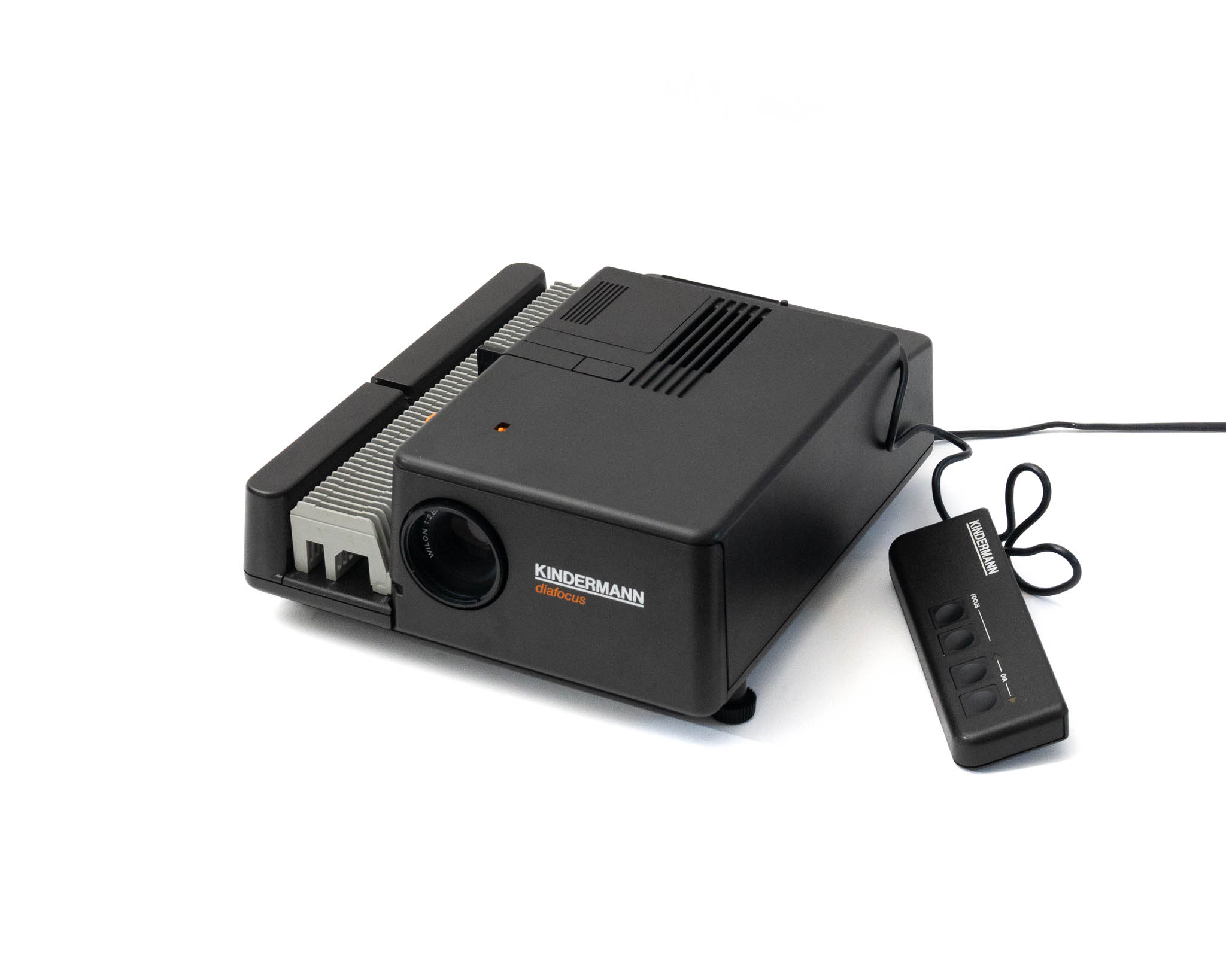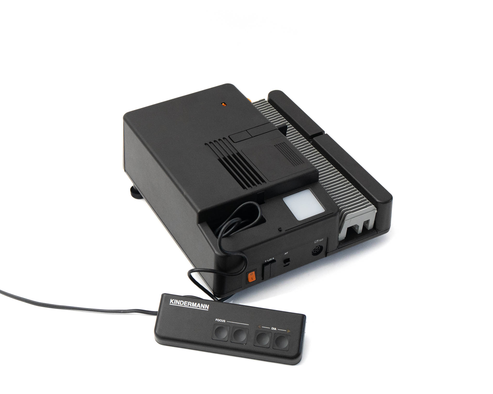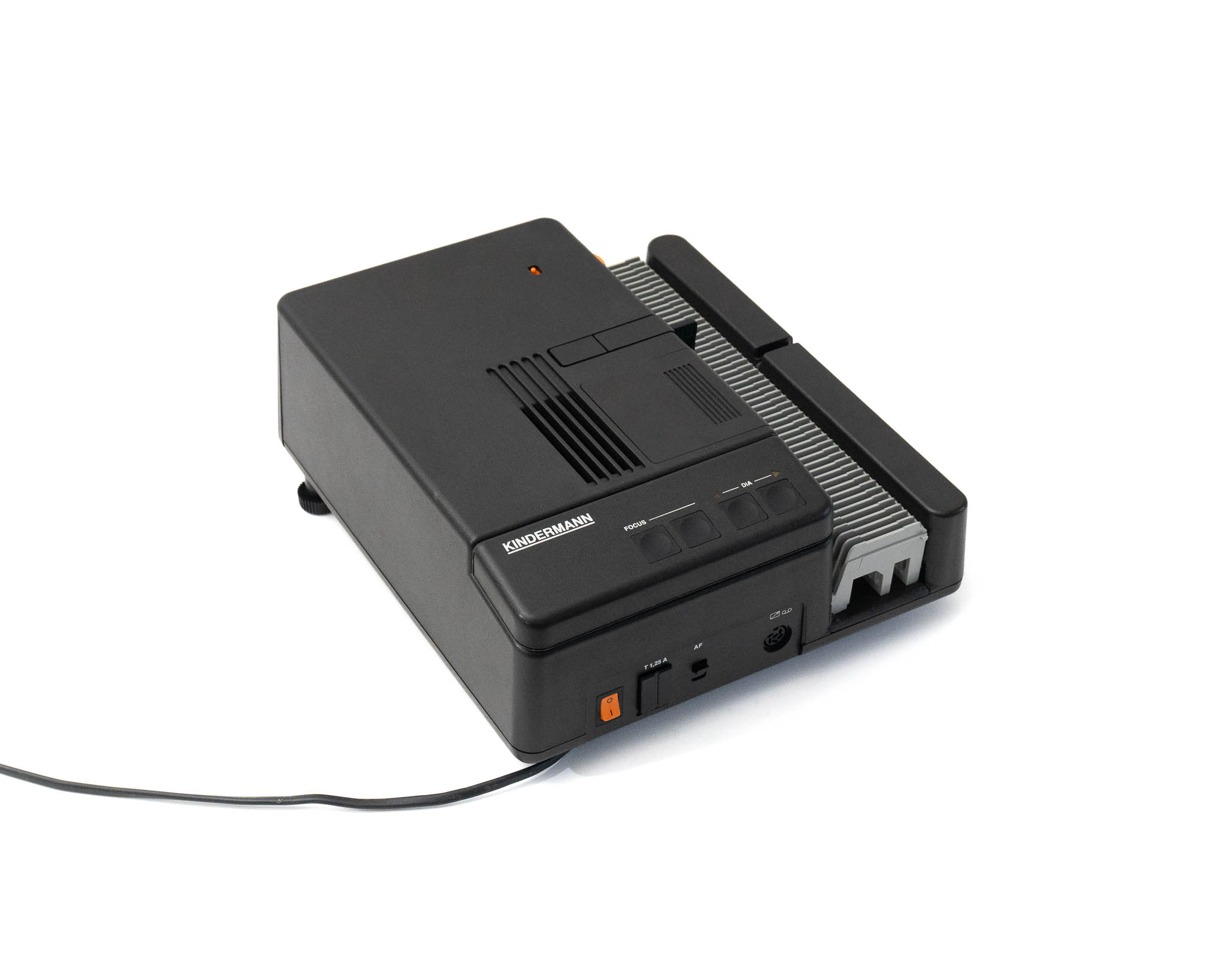 Renommée pour sa fiabilité, Kindermann fait partie des grandes marques de projecteurs de diapositives. En remplacant les courroies par des engrenages dans la plupart de ses modèles, la marque allemande a conçu des projecteurs destinés à résister aux épreuves du temps.